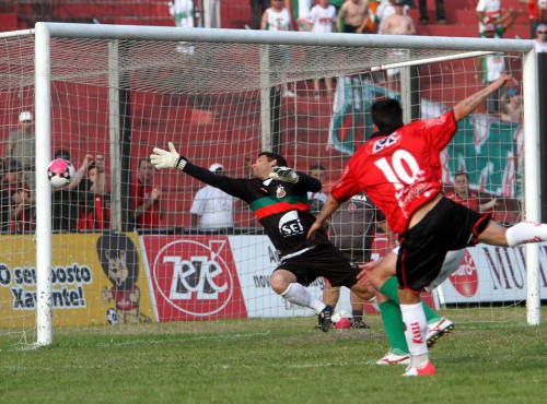 Tiago Renz, em cobrança espetacular, botou no fundo das redes de Yai, e